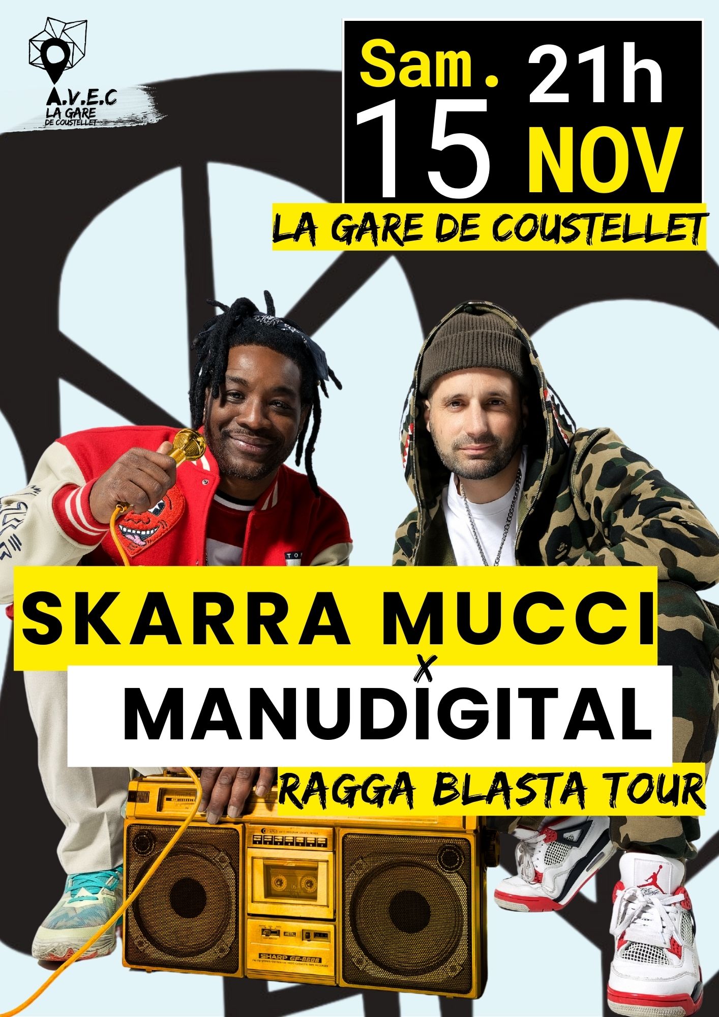 Ces deux figures emblématiques du reggae dancehall se lancent dans une tournée commune exclusive en 2025, le « Ragga Blasta Tour » ! Skarra Mucci, célèbre MC jamaïcain, mondialement connu et surnommé le « Dancehall President », s’allie à Manudigital, qui s’est imposé comme l’un des plus grands producteurs d’Europe. Au programme le duo proposera un show explosif alliant reggae-dancehall, dub et hip hop en passant par la bass music. Porté par l’énergie communicative et le flow imparable de Skarra Mucci et servi par l’agile versatilité de Manudigital derrière ses machines.