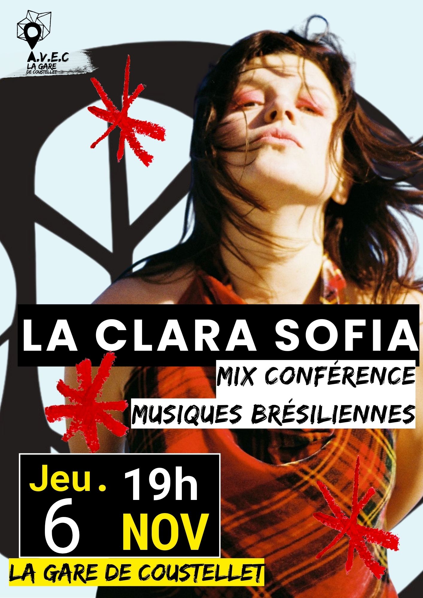 Laissez-vous guider au cours de ce voyage musical à travers le Brésil, du Nord au Sud, des années 1950 à aujourd’hui. Le Brésil, véritable continent musical, se dévoile au fil des rythmes et des époques. Avec La Clara Sofia, artiste franco-brésilienne accompagnée par l’association A.V.E.C La Gare, embarquez pour une exploration sonore entre musiques populaires incontournables et trésors traditionnels méconnus, dans un aller-retour poétique entre passé et présent.